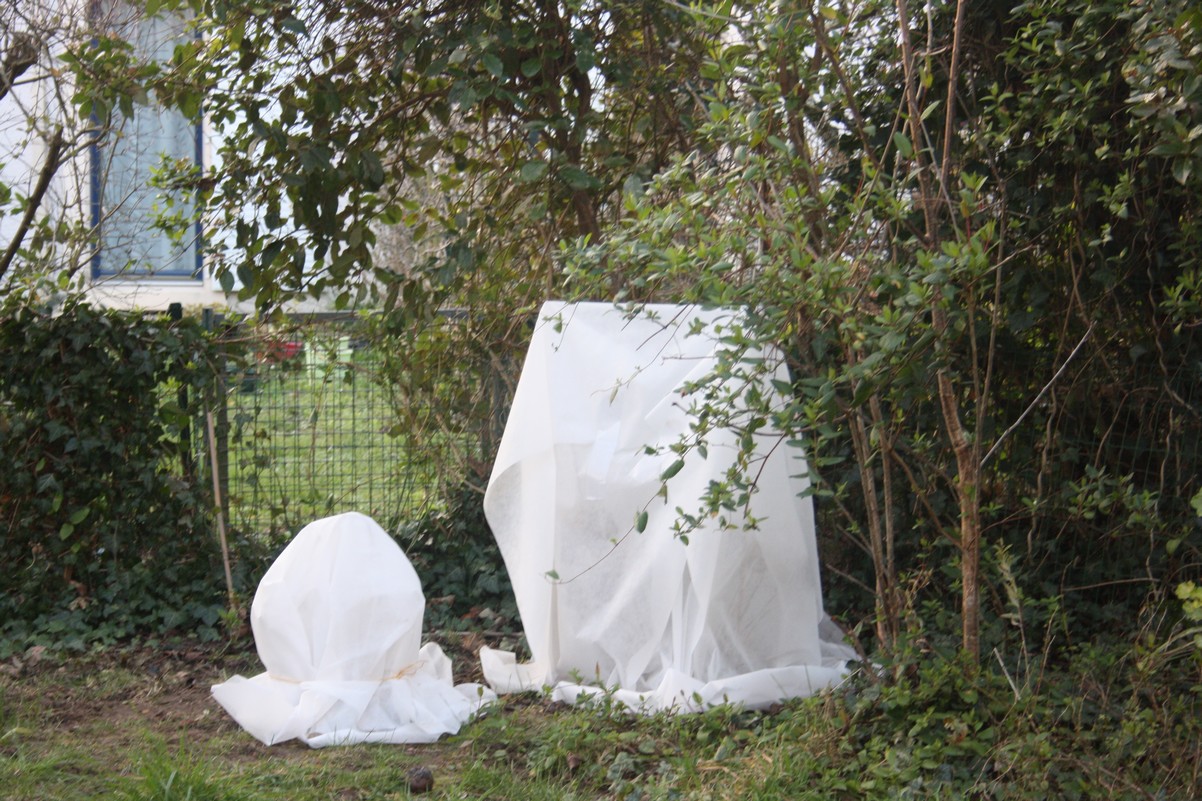 J'ai fait ça, couvrir le hortensias encore tous jeunes, on ne se moque pas trop, c'est la première fois que je mets des voiles d'hivernage