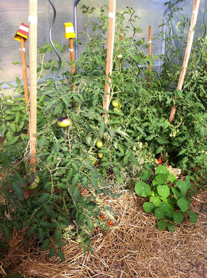 En avril, quand ils sont sous la serre, je mets du purin d'ortie dilué, toujours par capillarité (un arrosage