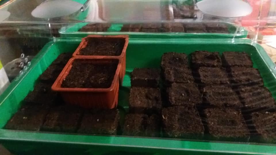 Sinon, je cherchai des terrines avec couvercle mais mon coté récup et économe m'interdisait d'en acheter aussi cher, du coup j'ai trouvé mon bonheur chez action, la terrine et son couvercle pour 2,50€, j'en ai de suite pris 5, deux sont déjà occupées par mes mottes de tomates (qui commencent à pousser).