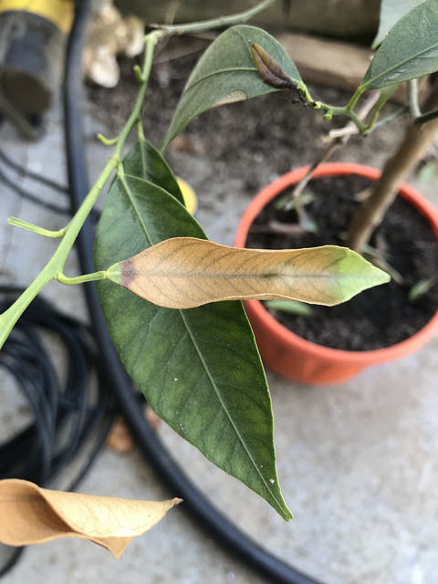 Citrus tâches brunes et feuilles qui tombent