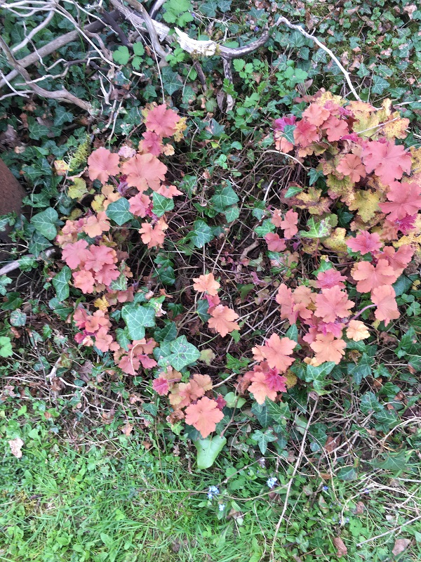 Depuis quelque temps j'ai laissé pousser le lierre au sol du grand massif.
