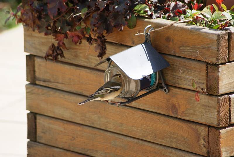 J'ai arrêté de nourrir les mésanges (à part ces deux distributeurs) car ce n'est plus la saison (et parce que les pigeons s'en donnaient à cœur joie !