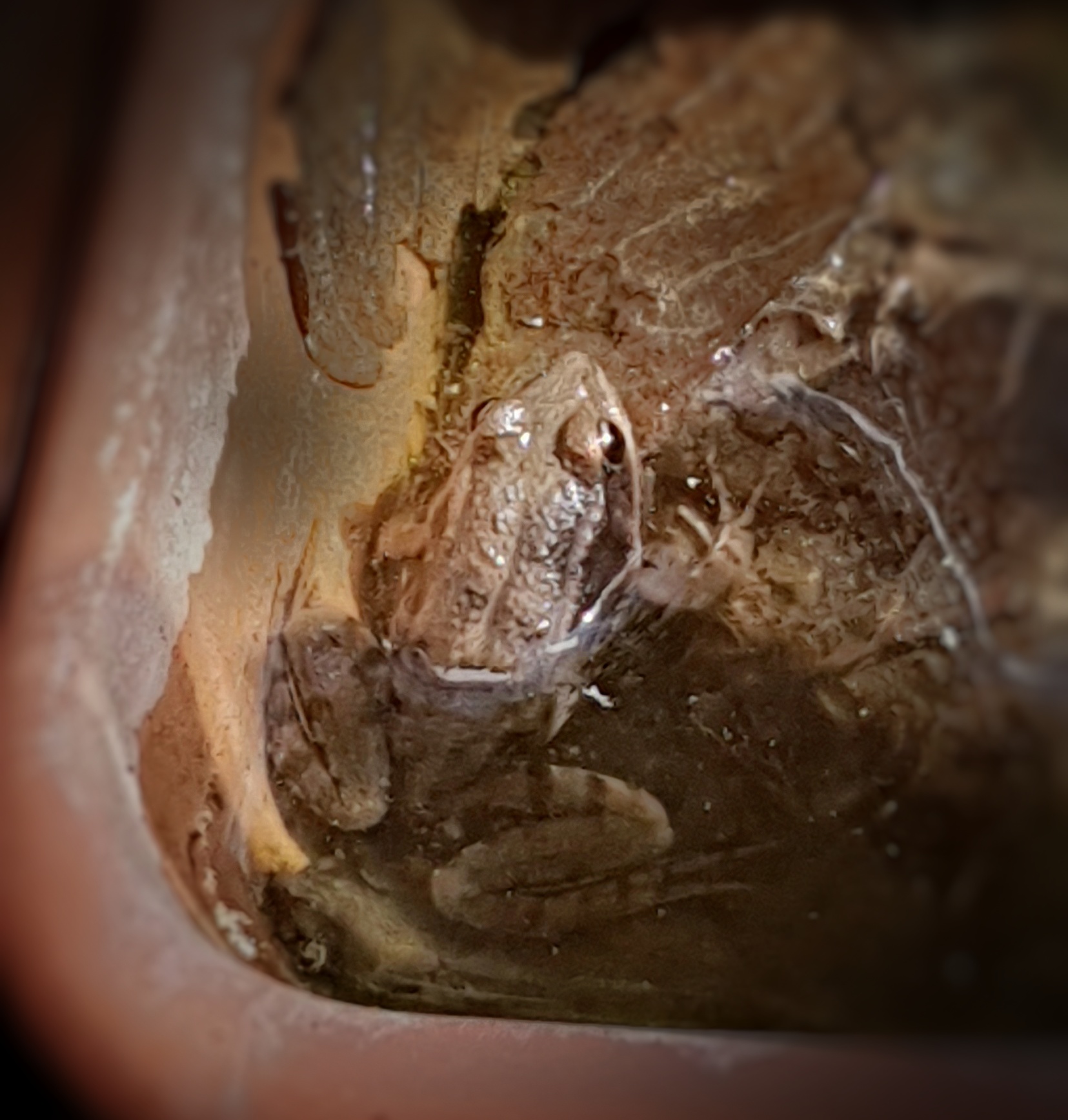 Bonjour à tous je viens de m'inscrire sur le forum et j'espère poster mon sujet au bon endroit (je m'excuse d'avance si ce n'est pas le cas). Comme indiqué dans le titre j'essaye d'identifier une grenouille qui s'est installée dans mon jardin. Pour la petite histoire, elle est arrivée dans mon bassin lorsque que j'ai acheté mes plantes aquatiques donc elle était au "stade tétard". Petit tétard est devenu petite grenouille et à quittée mon bassin pour s'installer où plutôt se "coincer" dans le dessous de pot d'une jardinière. Je lui ai donc aménagé un dessous de pot (sans pot) plus grand en guise de point d'eau. Elle y est restée tout l'été puis elle s'est mise en hibernation.. Je ne pensais pas qu'elle resterait mais cette après midi surprise, petite grenouille est revenue dans son dessous de pot aménagé ! J'en conclu qu'elle se plait dans mon jardin. Bref du coup j'essaye d'identifier son espèce, j'hésite entre une grenouille rousse et une grenouille agile.. les deux se ressemblent énormément et n'étant pas du tout experte en batracien je n'arrive pas du tout à voir la différence entre les deux.. Si quelqu'un pouvait m'aider à l'identifier ça serait très gentil !