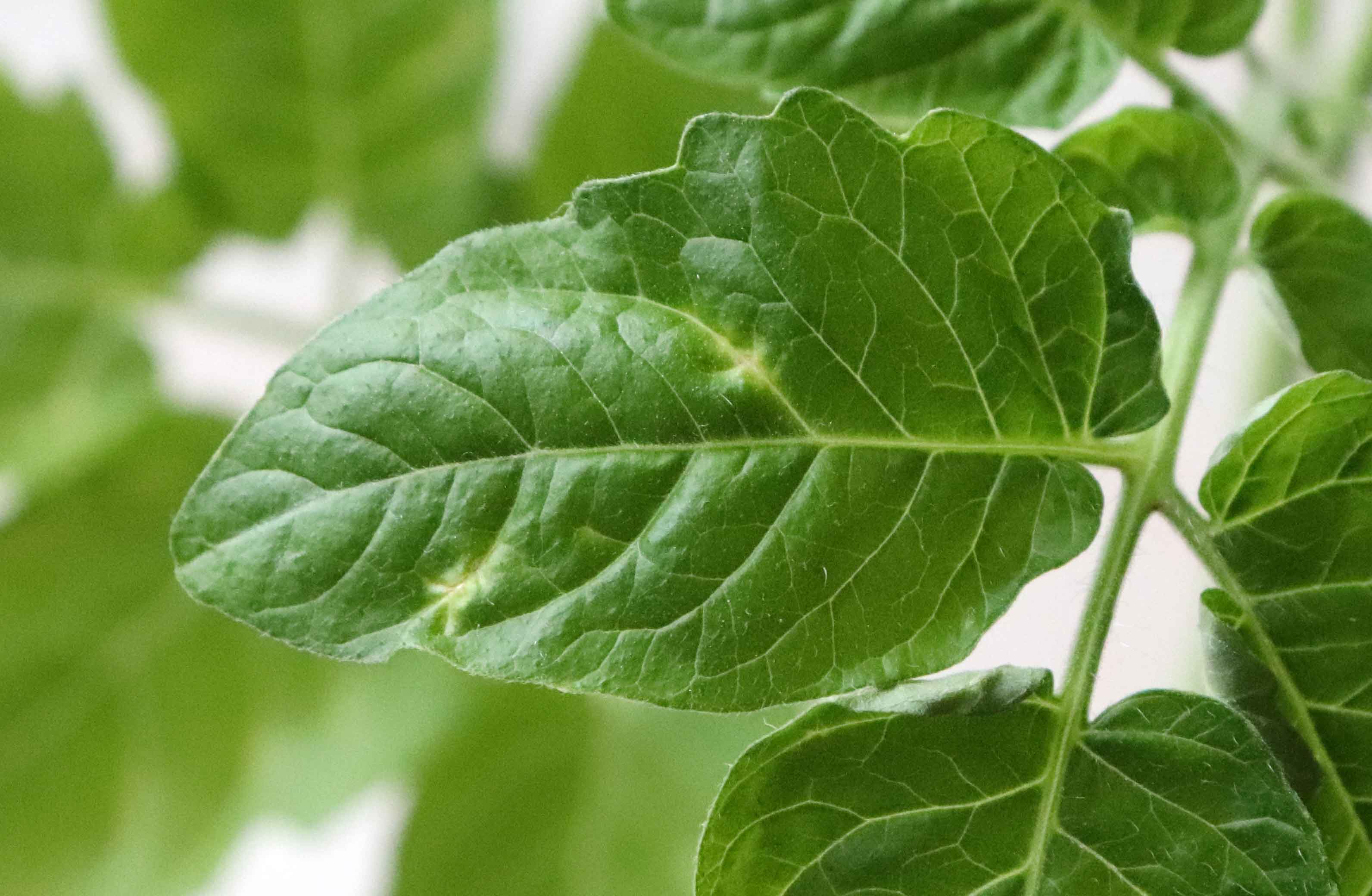 J'ai un plant de tomate cerise Gardener's Delight en godet qui m'inquiète un peu. De petites tâches jaunes apparaissent sur les feuilles, et ces dernières se mettent à se plisser. Ca n'a pour l'instant pas l'air très grave (voir photo aspect général), le plant continue de pousser, et toutes les feuilles ne sont pas atteintes, mais j'aimerais éviter que ça n'empire...