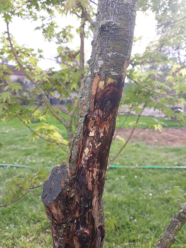 Bonjour a tous je vien vers cr j'ai un souci avec un palmatum de semi plante depuis une quinzaine d'annee voila au printemps j'ai decouvert que une moitie etait seche et que l'ecorce s'exfolié sur une bonne partie du tronc en dessous c'est pas joli...photo ci jointe...verticulose ou bacteriose ? je l'abat de suite ou a t'il une chance ? je l'ai traite a la bouillie bordelaise histoire de....il a pris une inondation il y a deux ans durant 5 jours... au pourtour de l'ecorce qui s'exfolie l'aubier reprend...Merci de votre aide