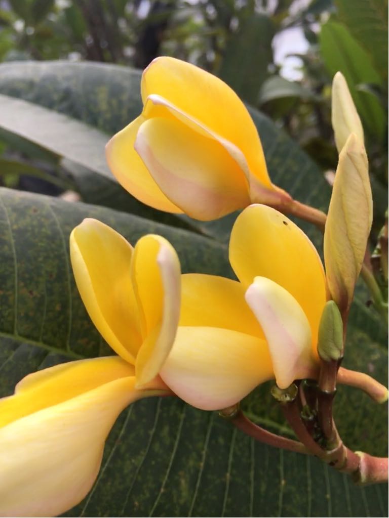Fleurs de frangipanier, il y en a aussi des roses et des blanches