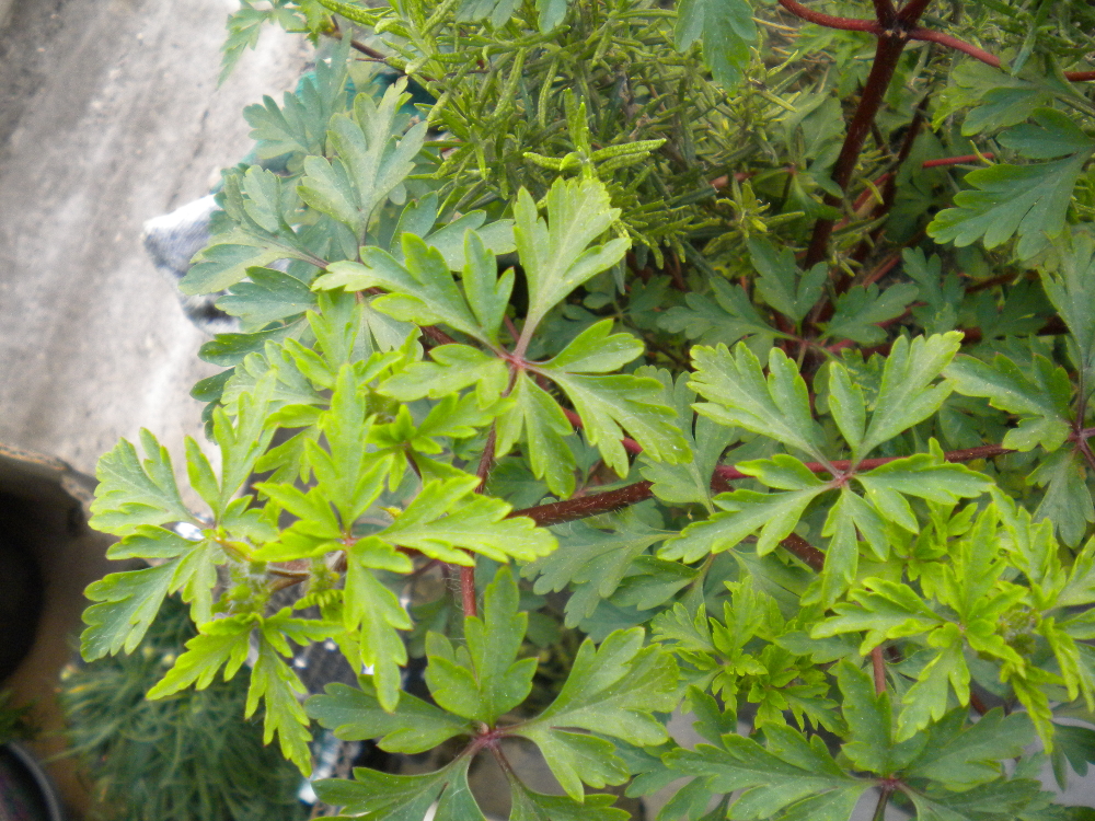 - Géranium luisant pour la première ? 30 cm de haut, pousse de préférence spontanément dans mes potées, minuscules fleurs roses, feuilles à l'odeur âcre lorsqu'on s'approche, tiges rouge foncé/marron.