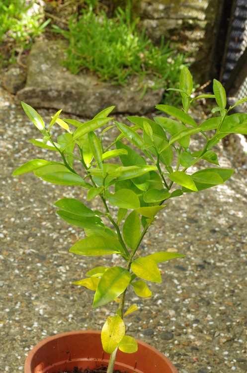 J'ai une autre question sur les agrumes, j'ai ce petit arbre 45 -50 cms issu d'un pépin, le problème pépin de quoi ? Pamplemousse je pense.