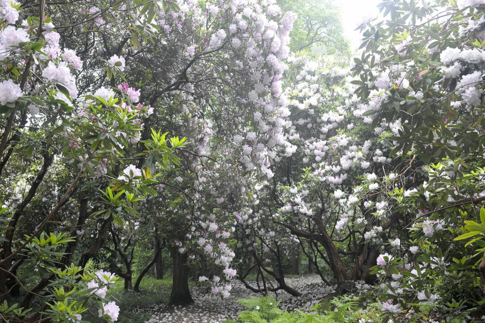Avec un imperméable et des bottes, je m'échappe de temps en temps en Haute Normandie prendre un bain de floraisons de Rhododendrons; cet incroyable chiendent local ...
