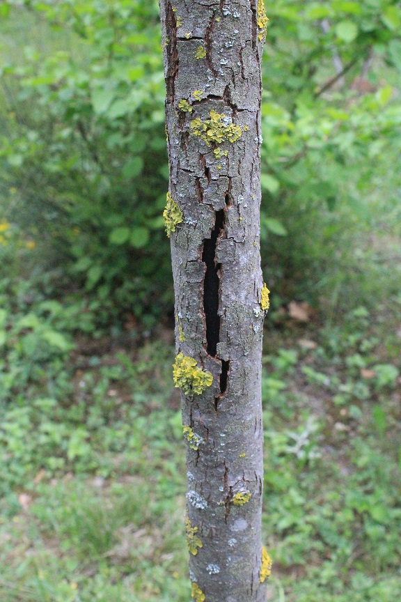 Il manque une vue d'ensemble mais si l'arbre est encore végétatif il faut vite retirer tous ce qui est craquelé sur le tronc en évitant de le blesser davantage et le protéger avec de la bouillie bordelaise ou de la chaux liquide.
