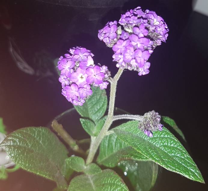 Les fleurs que vous voyez violettes sur la photo sont en fait bien bleues et les feuilles sont vertes foncées.