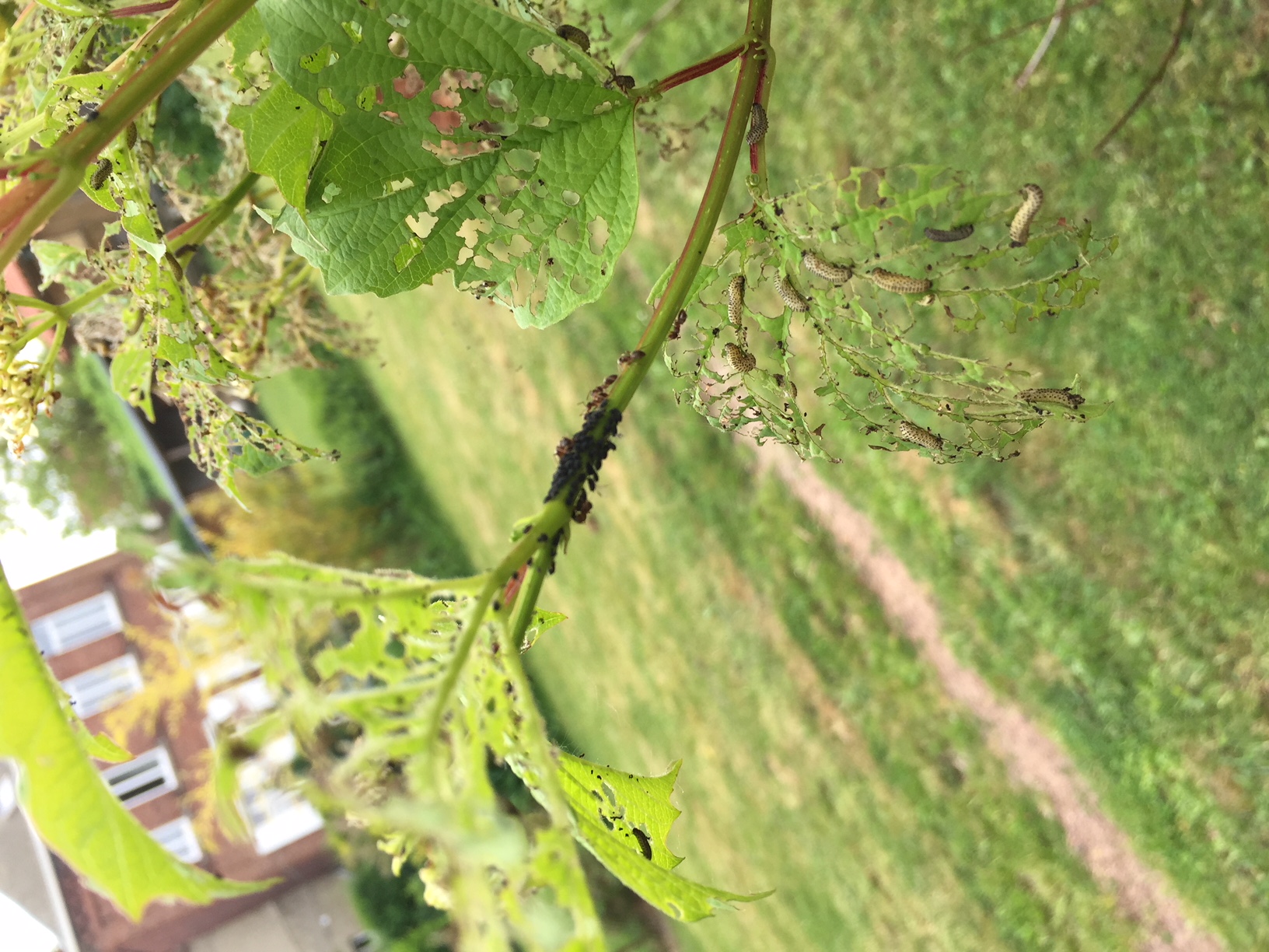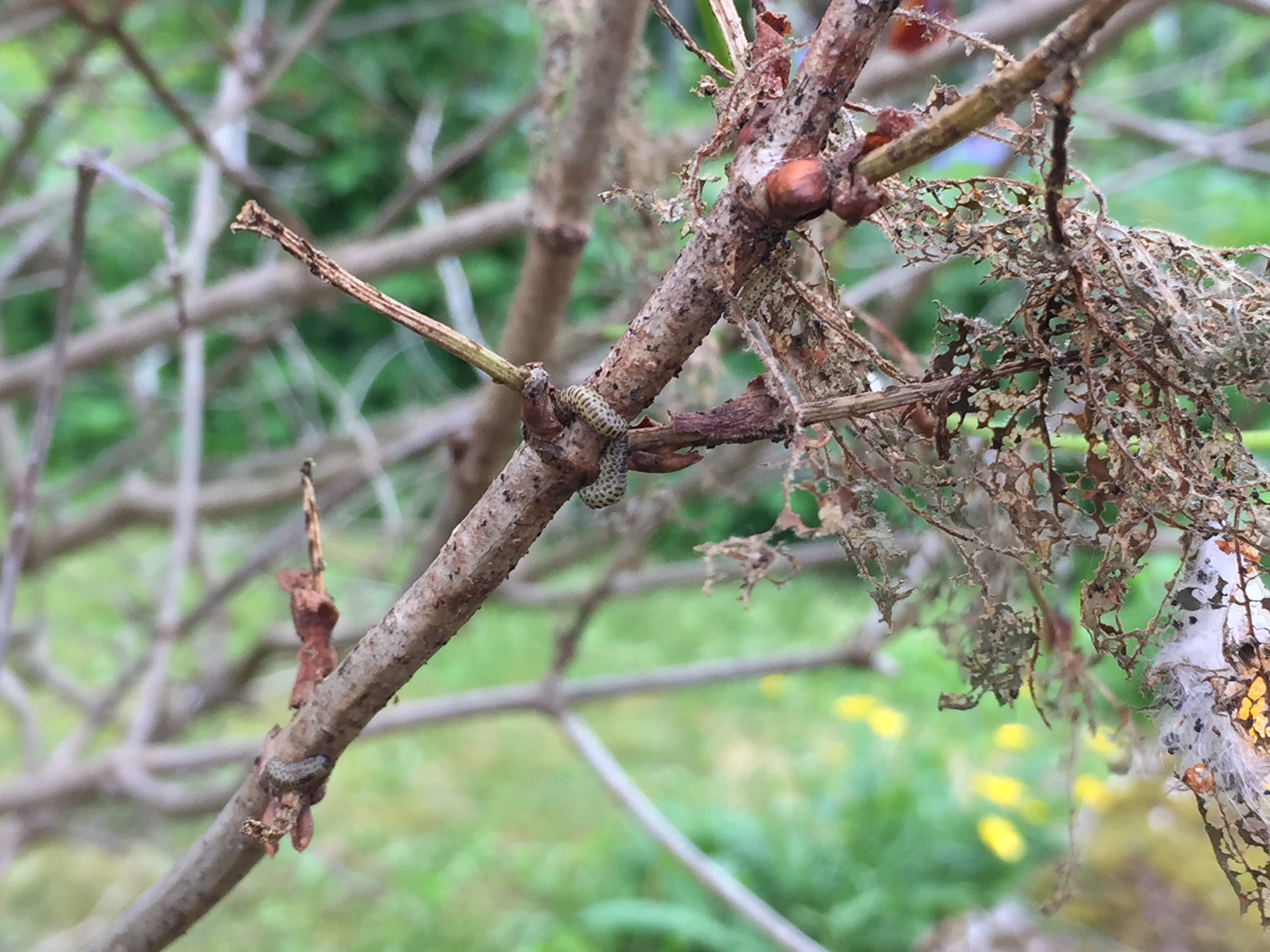 J'ai pris quelques photos de ce que j'ai pu voir sur les parties vivantes ("oeufs" noirs, gosses fourmis, chenilles) :