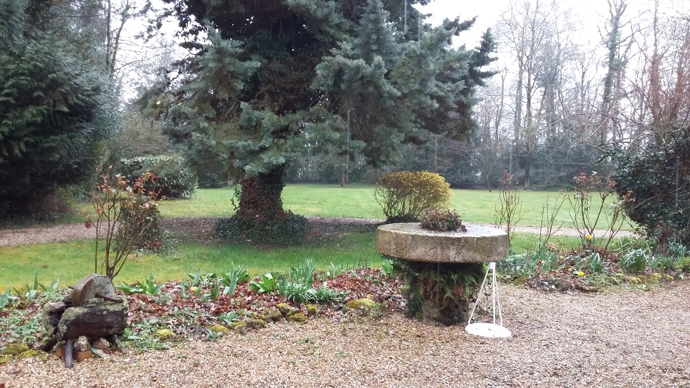 Le parc (cf photo jointe) : pelouse vaguement carrée de 2 500 mètres carrés, avec des arbres parsemés sur les côtés. Le sol est en gazon, régulièrement recouvert de feuille et il y a pas mal de mousse car il a été mal entretenu (on la laisse encore deux ou trois ans par manque de temps et car ça limite la pousse du gazon).