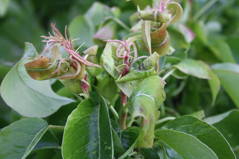 Pour le poirier j'ai là aussi des feuilles qui s'enroulent. Est-ce une maladie ou des insectes ?