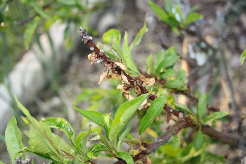 L'an dernier la cloque c'est installée et des branches n'ont pas aimé. Je pensais que cette année tout serait rentré dans l'ordre mais j'ai des branches qui sont restées mortes.