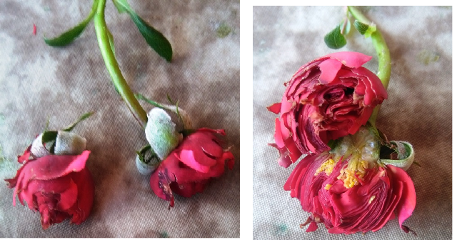 Cependant, après avoir procédé à la dissection, je pouvais trouver qu'à l'intérieur il n'y a pas d'insecte mais seulement des pétales mangés et son état est maintenant celui-ci