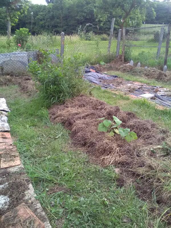 Ces derniers jours, j'ai donc désherbé/démarrié, arrosé, tondu et paillé toujours mes framboisiers (mais c'est sans fin car un chevreuil vient manger mon paillis) ... Ce qui m'inquiète un peu pour les cucu que je pensais planter dans ce coin!