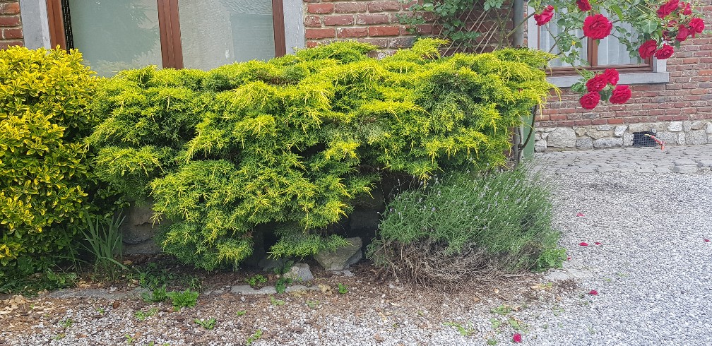 Par contre, en parcourant le forum, apparemment le Juniperus x media serait une espèce rampante, alors je ne sais pas si l'arbuste ne pousse pas du tout en hauteur mais le mien en tout cas oui (il a déjà été taillé grossièrement plusieurs fois ces dernières années)