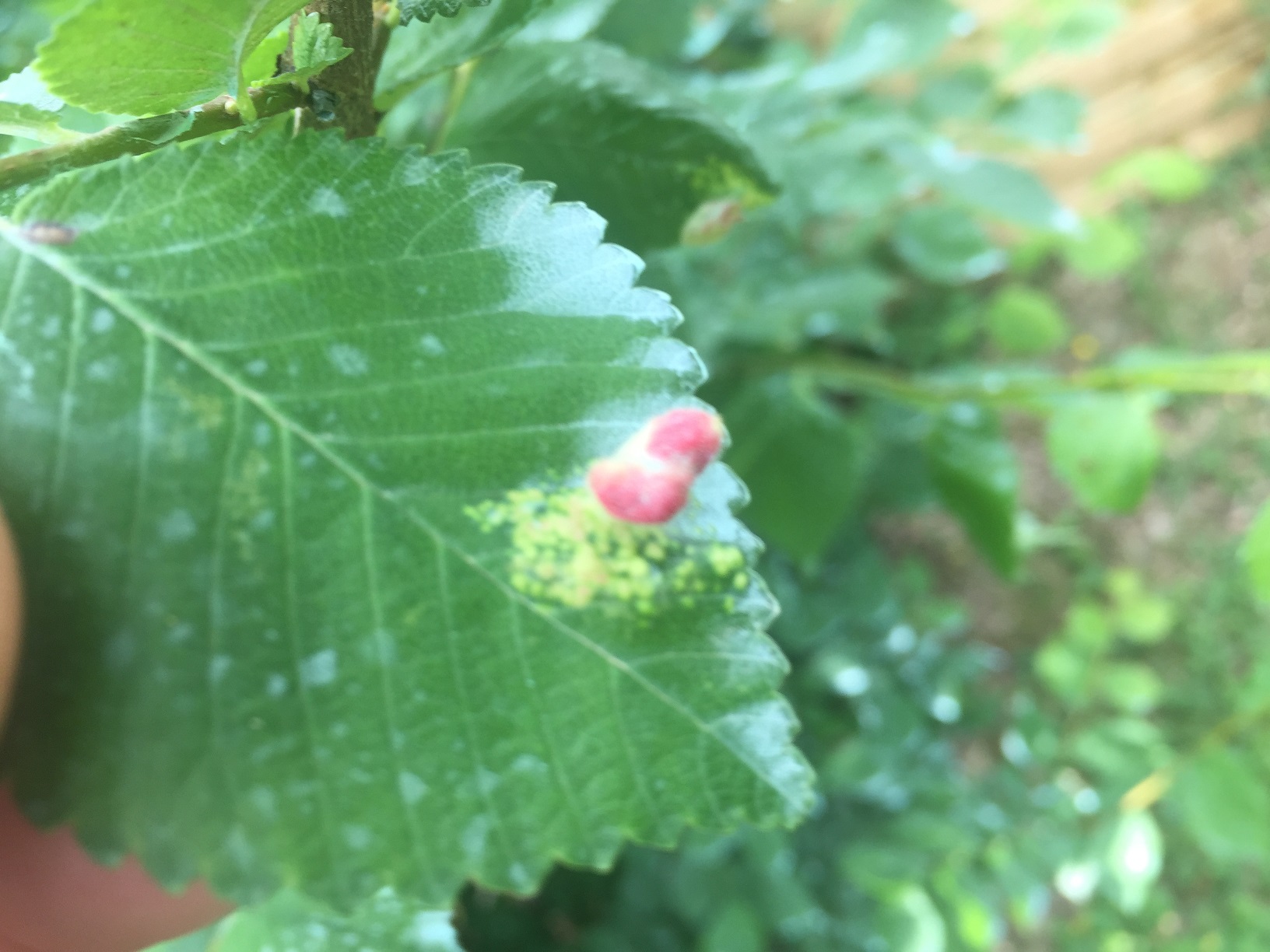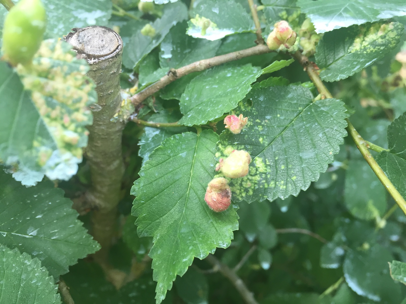 Je vais probablement dire un non-sens, mais la pathologie me rappelle la Galle sur orme due à Tetraneura ulmi.