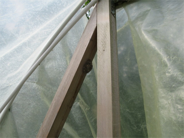 J'ai pas mal remué dans le tunnel et fait bouger le plastique en essayant de redresser les arceaux avant de m'apercevoir de ce nid. Elles n'ont pas eu l'air de se sentir menacées, mais est-ce que ça va durer ?