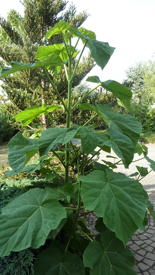Merci pour la réponse mais je suis septique que ca soit bien un paulownia car ca doit faire plus de 5 ans qu'il est présent, il y a plusieurs "grosses tiges" qui partent du sol. Si je le coupe il repousse rapidement. Et enfin je n'ai jamais vu de fruit ou autre chose que les feuilles sur cette plante.