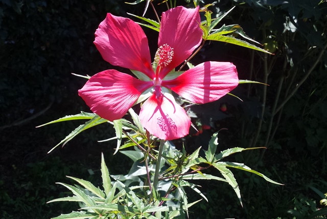 Un Hibiscus coccineus ... un des hibiscus des marais américain ; assez bonne rusticité