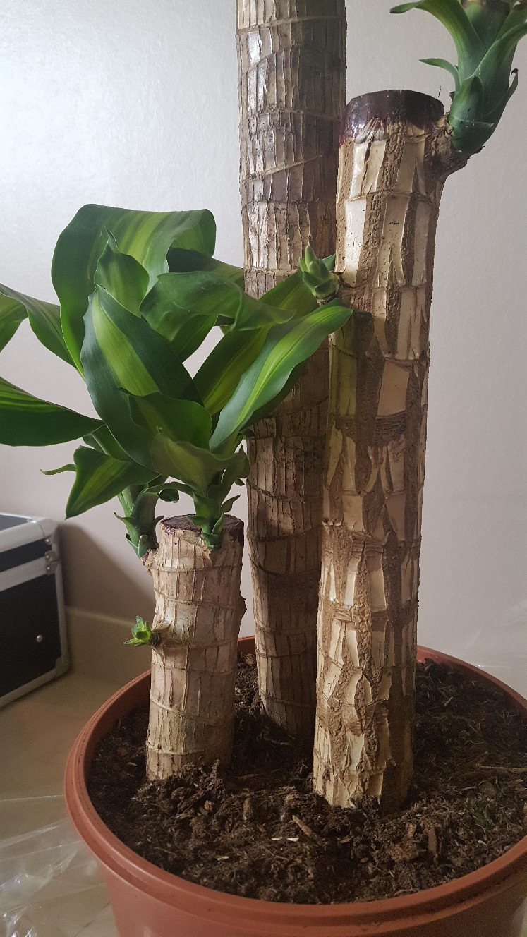 PS : je joins une photo des troncs de mon dracaéna qui semblent bien serrés, j'imagine que quand je vais le rempoter il faudra les espacer un peu non ? (mais la vendeuse m'a dit d'attendre un an pour le rempoter, c'est long non ? ou alors le faire si les racines sortent du pot, m'a-t-elle dit).