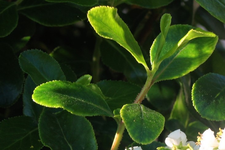 Feuilles petites, très crénelées, à limbe épais, très brillant,