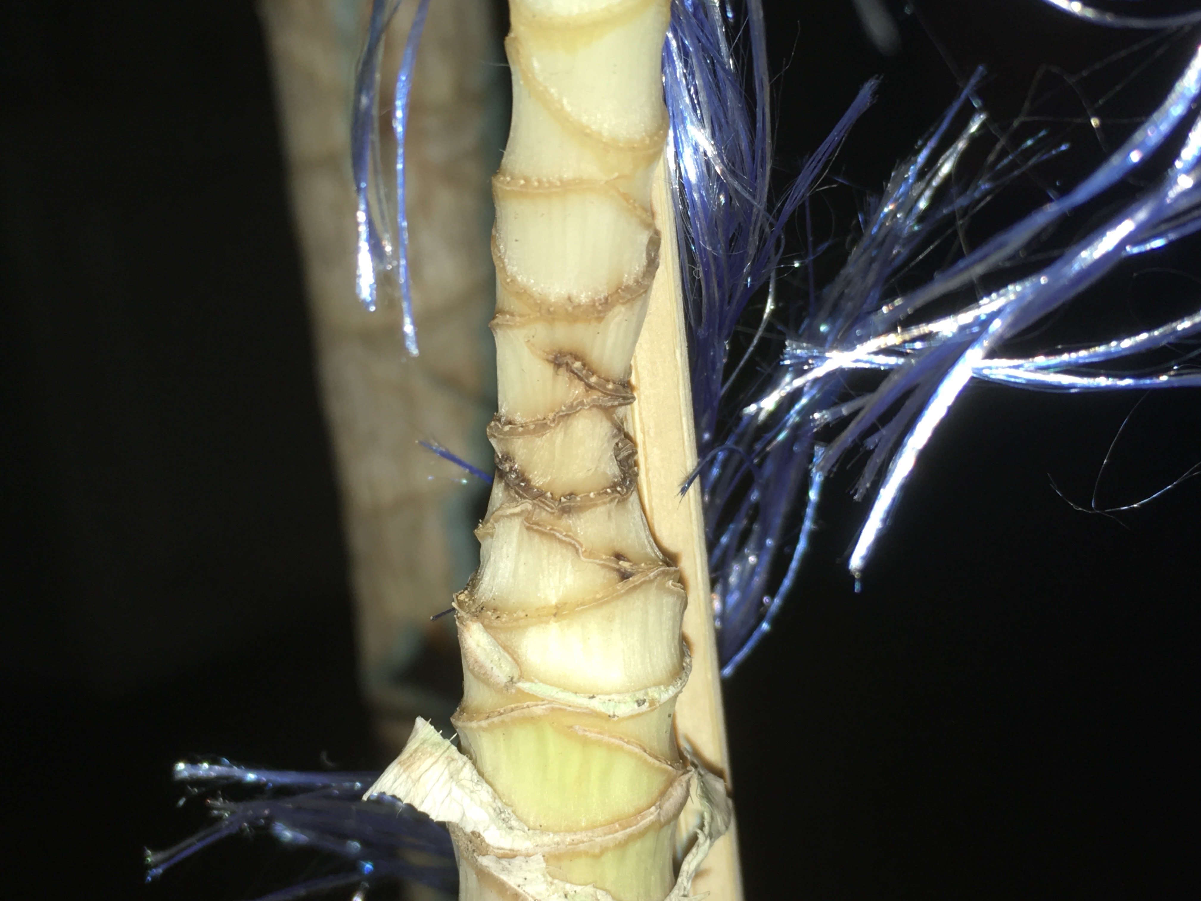Si cela peut aider, voici une photo du tronc à l'endroit où il semble très fragilisé... Je me demande si ces petits points noirs ne seraient pas une infection? (Très difficile à voir car c'est vraiment tout petit)