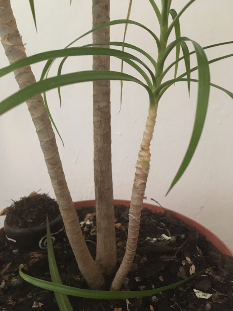 Ceci est mon premier post sur ce forum, j'espère que vous pourrez m'aider! Depuis une semaine, l'une des pousses de ma Dracaena perd ses jeunes feuilles vertes. Il suffit que je les touche à peine pour qu'elles tombent! Du coup, le tronc est tout blanc et très fragile (car par le temps de se renforcer avant que les feuilles ne tombent). La plante se situe dans mon appartement (malheureusement situé plein Nord donc pas de lumière directe, mais cela n'a pas été un problème depuis deux ans qu'elle est au même endroit), à température constante de 18-22 degrés. Je ne pense pas que ce soit un problème d'eau car les feuilles qui tombent sont vertes (et les autres ne sont pas plus brunes que le rythme normal de perte des feuilles), et je ne vois aucun insecte ou infection potentielle. Qu'est-ce qu'il se passe??