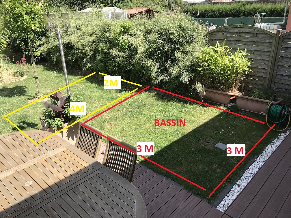 le BASSIN EST A L 'OMBRE ...............en tenir compte dans les réponses et dans la réalisation .............je déporterais le bassin en zone rouge ..........