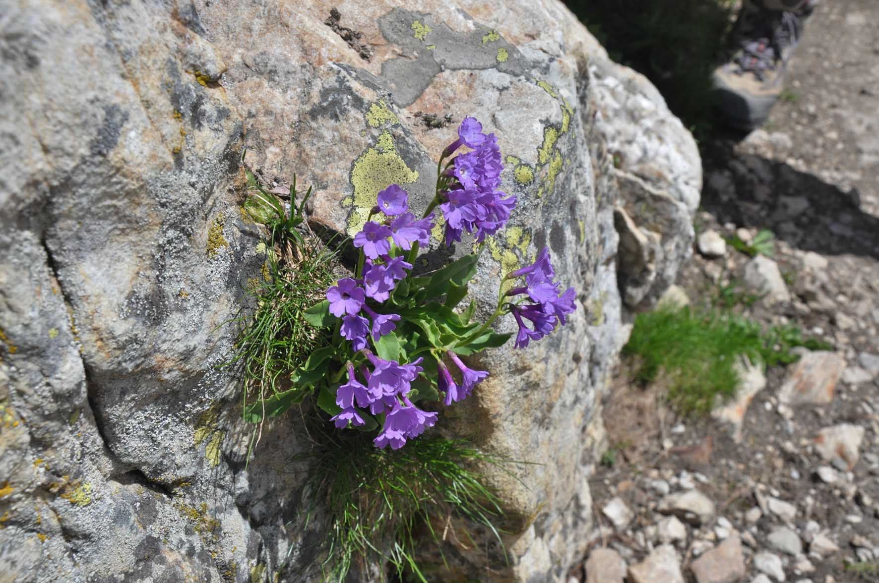 Une des primevères alpines ; il existe plusieurs espèces à fleurs bleues , violettes ou pourpres