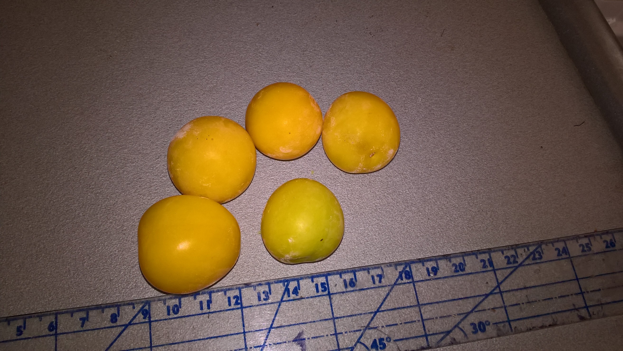 Voila la photo des prunes jaune rondes d'un diametre de 3 cm environ
