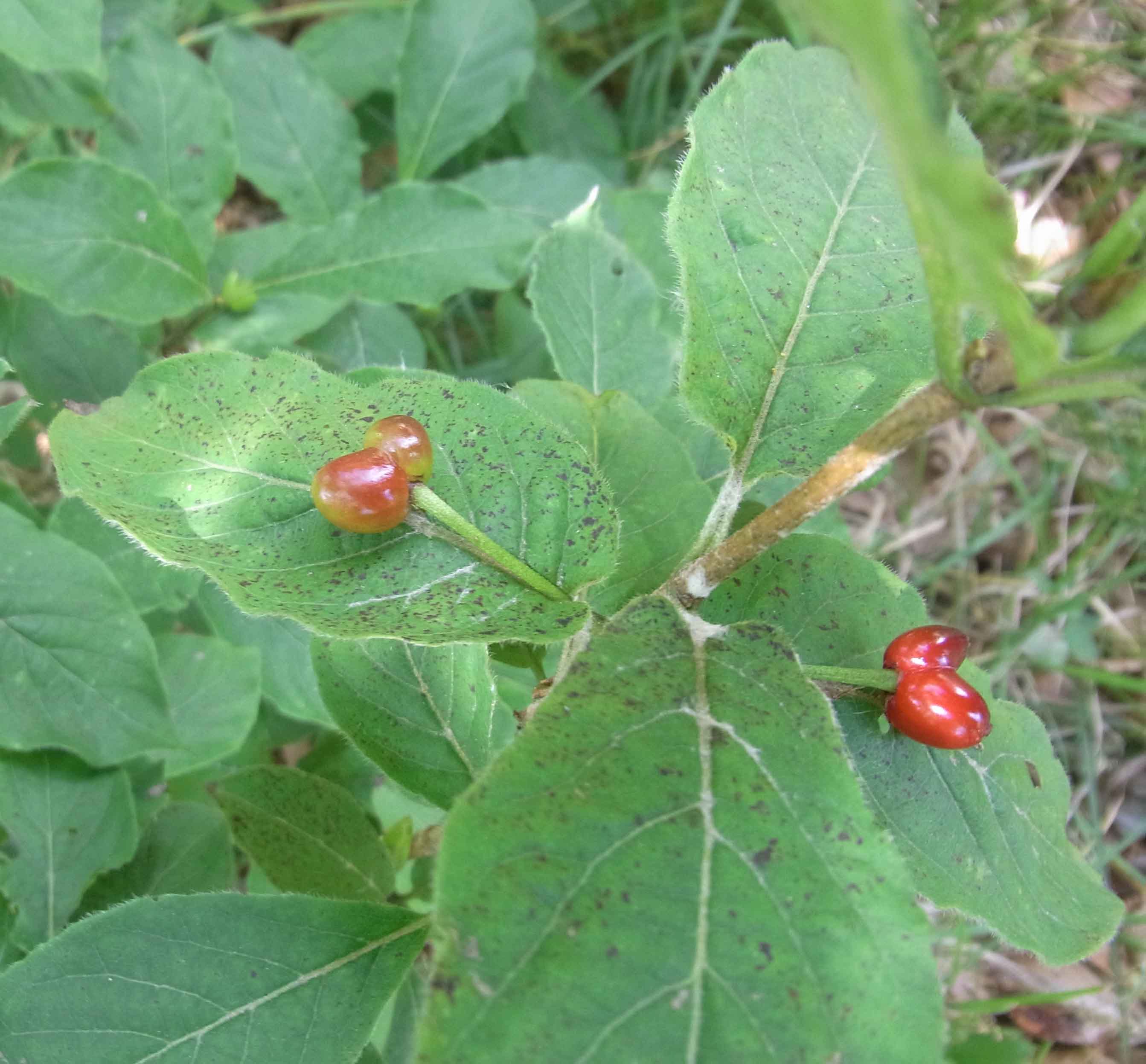 Ce chèvrefeuille a des baies noires , les autres chèvrefeuilles sauvages ont des baies rouges pour la plupart