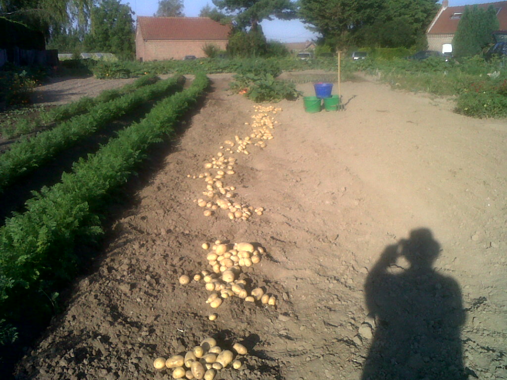 Matin arrosage et arrachage pommes de terre .Me reste sur trois routes des Bernadette/Charlotte/Bintje/Amora/Rumba