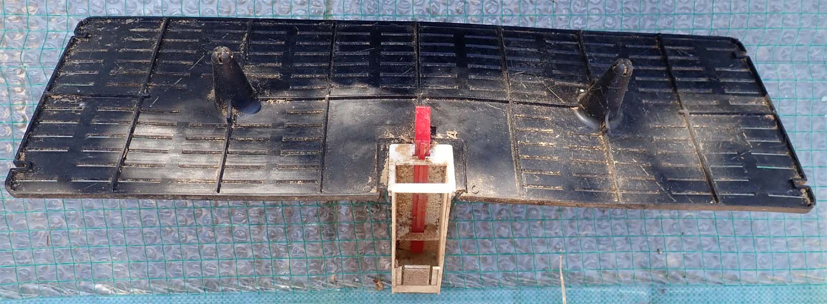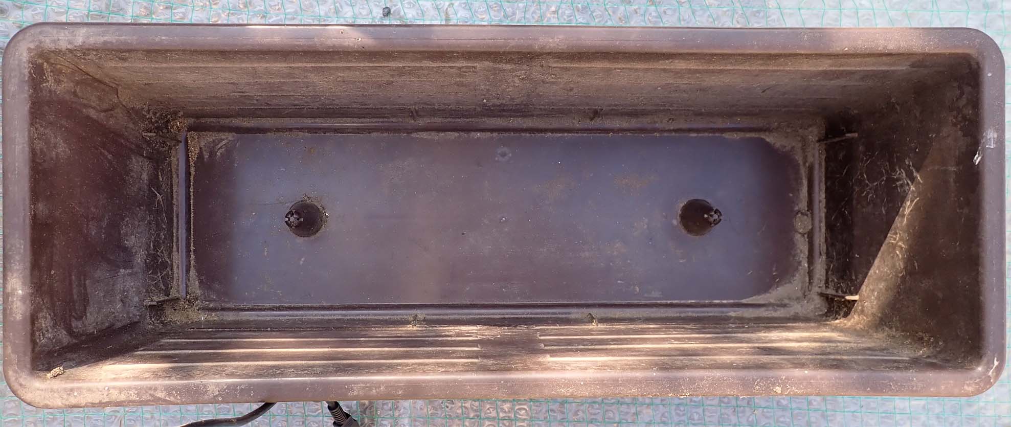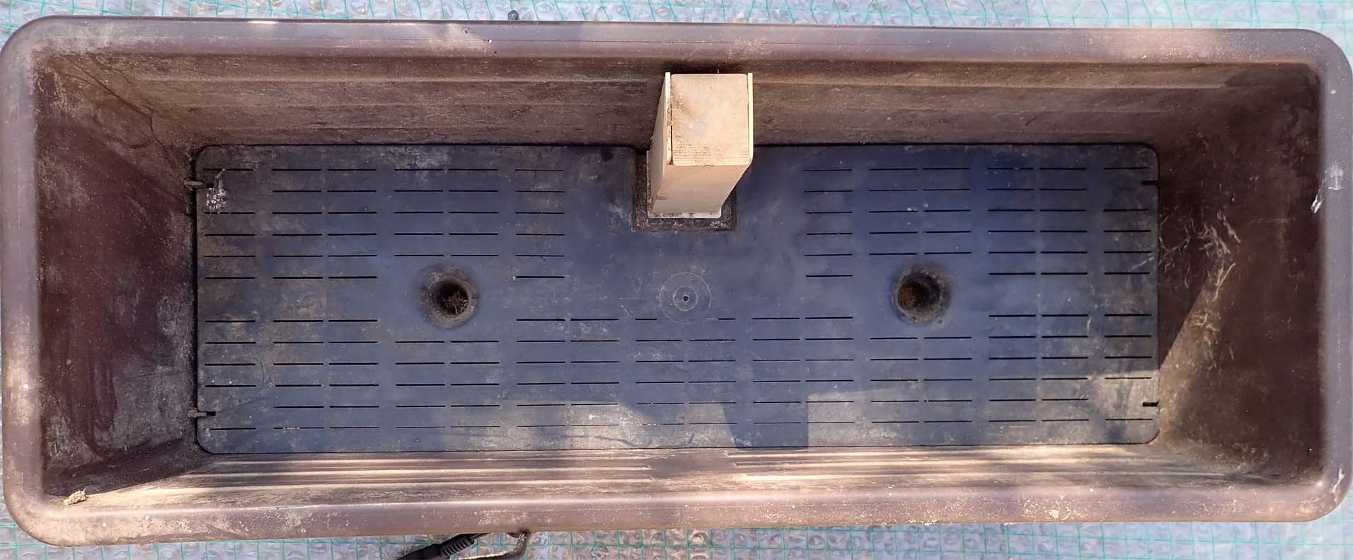 La grille, les fentes longitudinales font environ 4/10 dixièmes de mm de largeur. Les deux cônes creux, percés en leur sommet, plongent dans l’eau. Le but, ils se remplissent lorsque l’on met le substrat, ils font mèche.