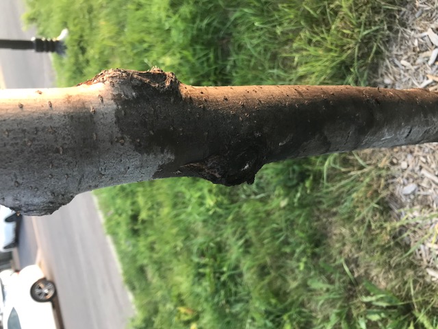 Trace noir sur tronc de maackia de l’amur