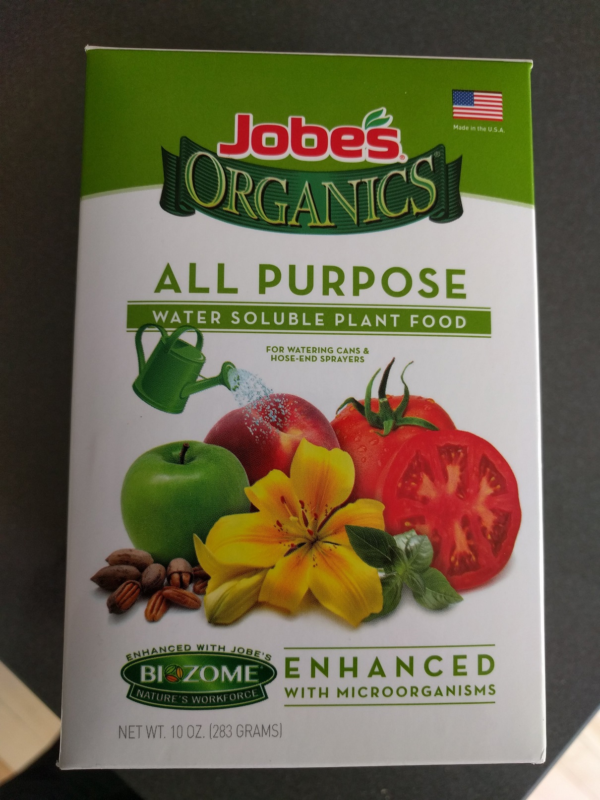 - J'ai commencé à lui ajouter de l'engrais 5 - 2 - 3 (cf la photo) que j'ai difficilement trouvé dans le commerce. J'en met 1/2 demi gallon d'eau par semaine avec 1/2 cuillère à soupe