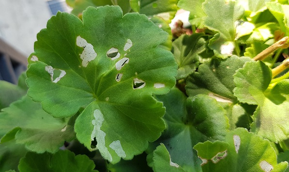 J'ai des géraniums et oeillets sur un balcon qui présentent des trous sur leurs feuilles. Cf. photos en pj.