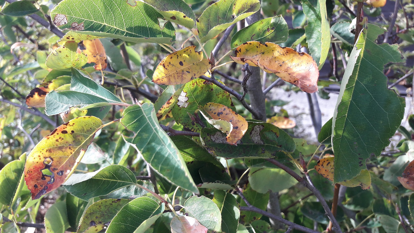 Je possède un amélanchier canadensis qui semble atteint par une maladie ou un ravageur. Sur internet, j'ai trouvé que l'amélanchier avait peu de maux ou ravageurs (rouille, feu bactérien, oïdium) et sauf erreur de ma part, il n'y a rien qui corresponde à ce que je vois sur le mien.