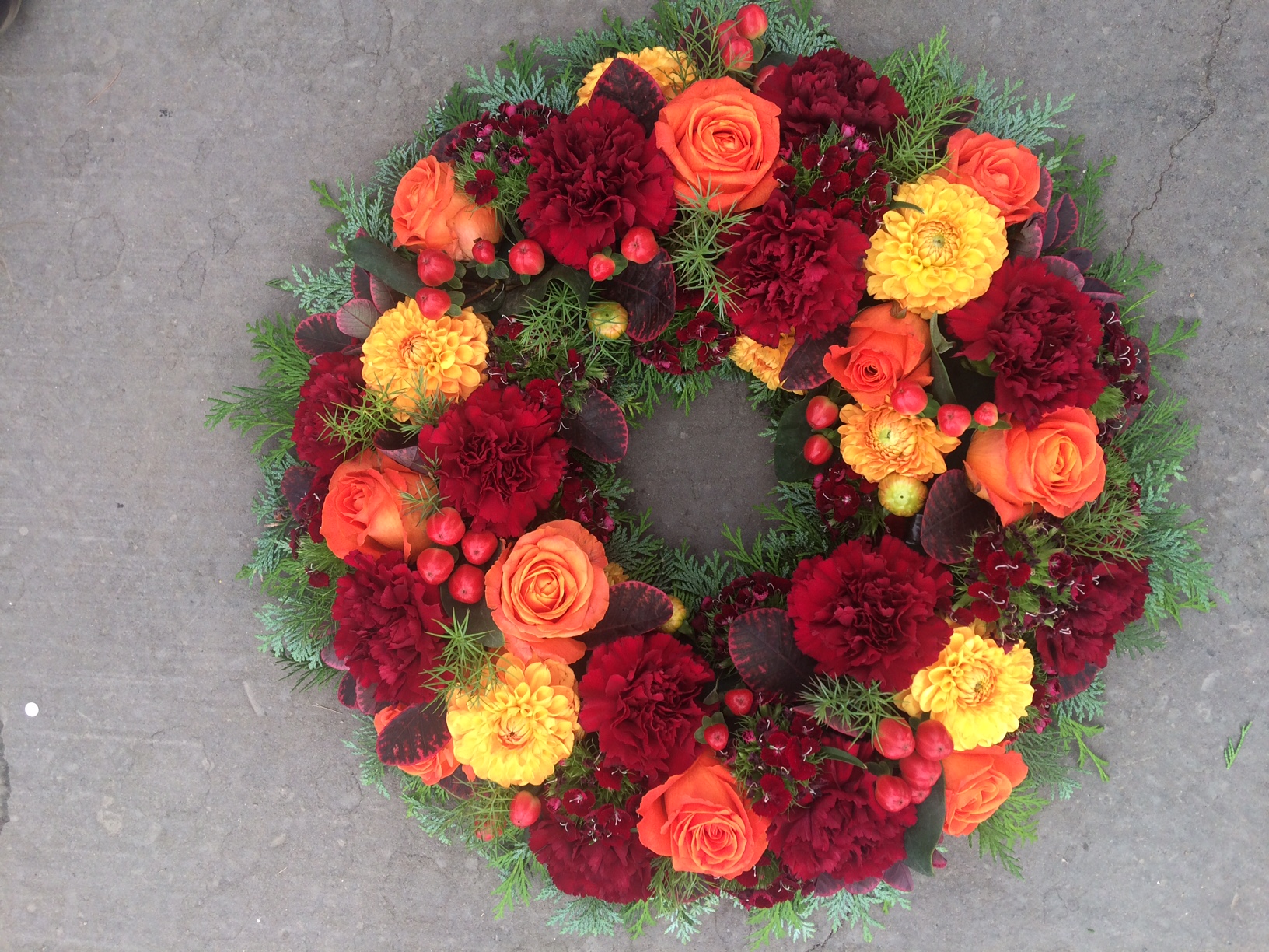 Bonjour ! Elle est jolie, ta couronne. J'aime bien cette gamme de couleurs.