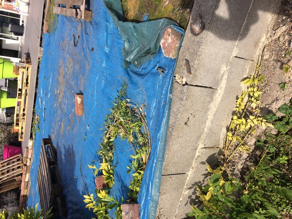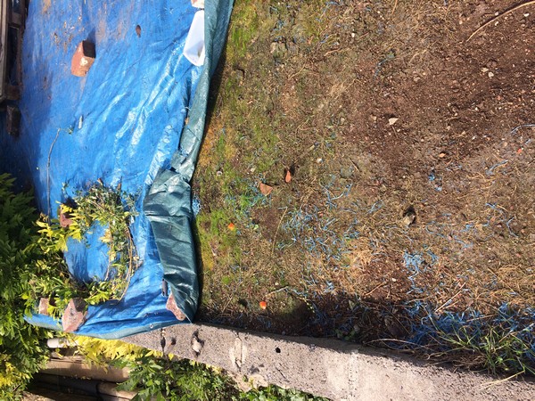 Tout d'abord tu devrais vite te débarrasser de cette horrible bâche bleue qui commence à se désagréger et contribue à "pourrir" et asphyxier ton sol
