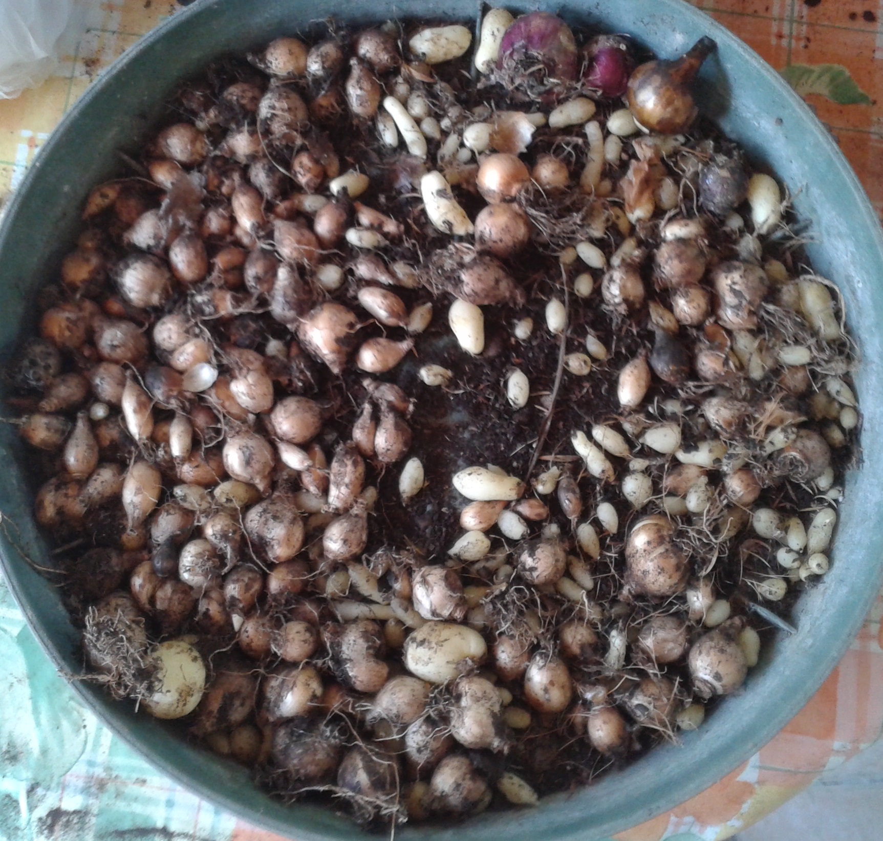 Il y a quelques jours j'ai défait une grande jardinière et j'ai trouvé des bulbes que je n'arrive pas à identifier. Est-ce que vous pourriez m'aider ?