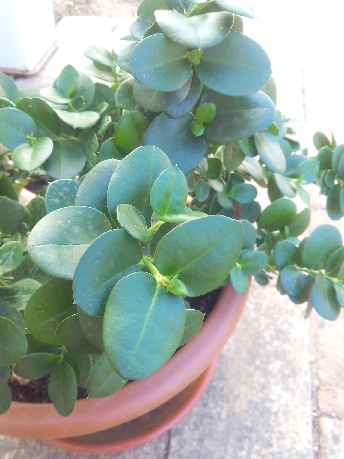 Bien que la seule fleur ne présente que quatre pétales, il me semble que ce doit être un Carissa (Apocynacées). L'espèce la plus courante est C. macrocarpa dont certaines variétés naines servent de couvre-sol. Fleurs très odorantes. Les Israéliens se servent depuis longtemps de Carissa pour fixer les dunes en bord de mer.