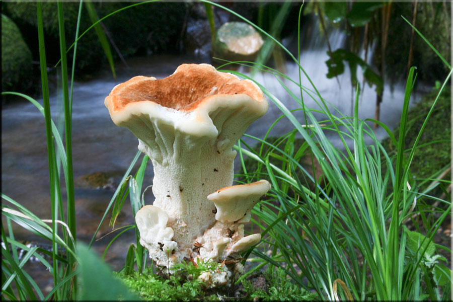 [Abortiporus biennis] Solitaire auprès d'un ruisseau