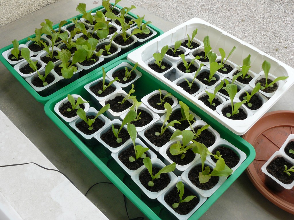 Salade préte pour la mise en terre , 3 variétés Batavias Blonde et Rouge Grenobloise et Scarole :