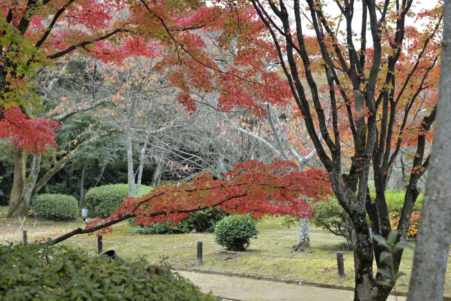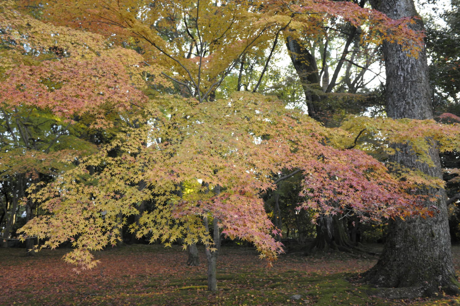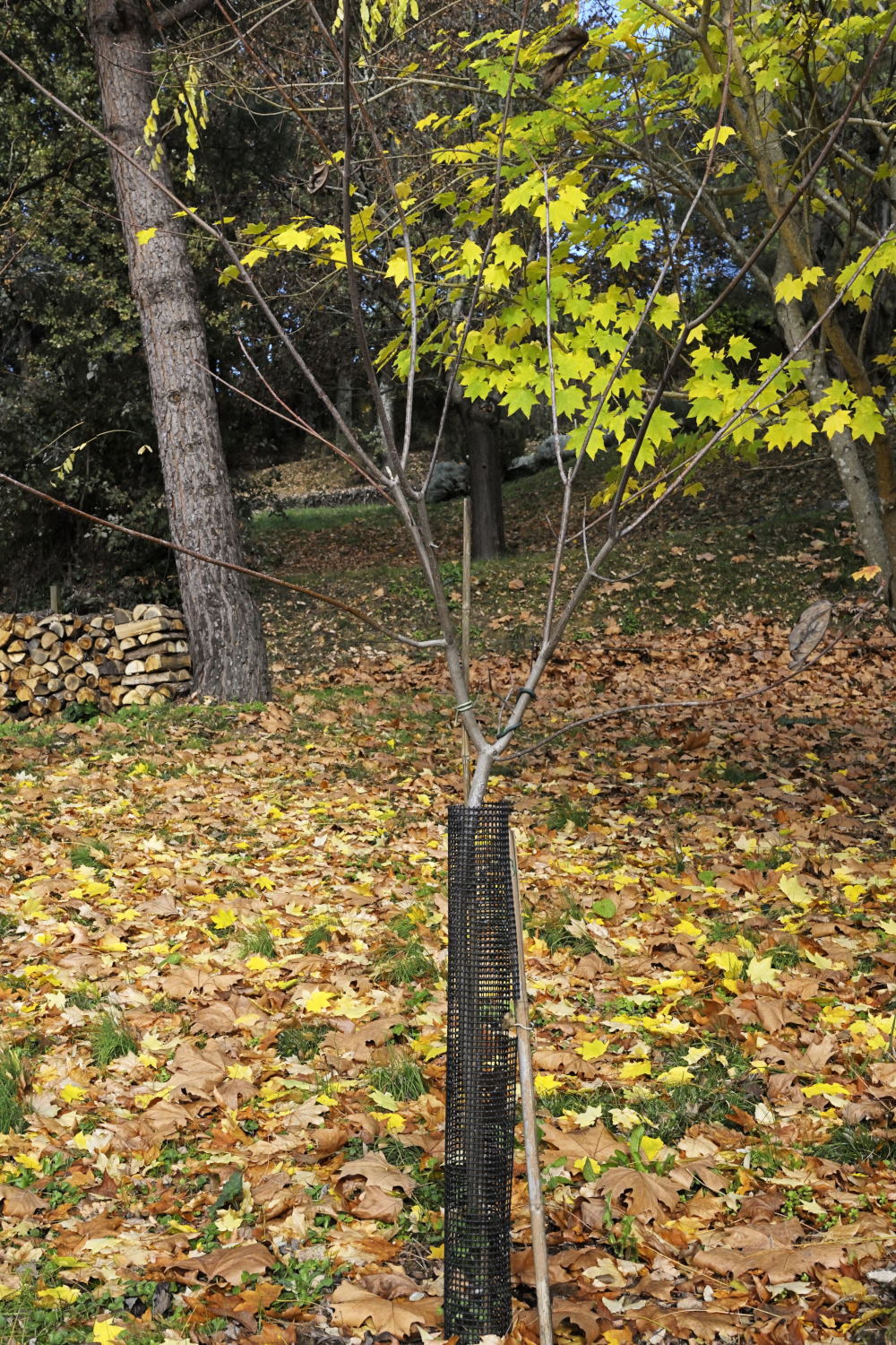 Image 7 .plantation assez récente. De nombreux cerisiers à fleurs font de l'ombre en été. En novembre leurs feuilles sont tombées, place aux couleurs des Erables.