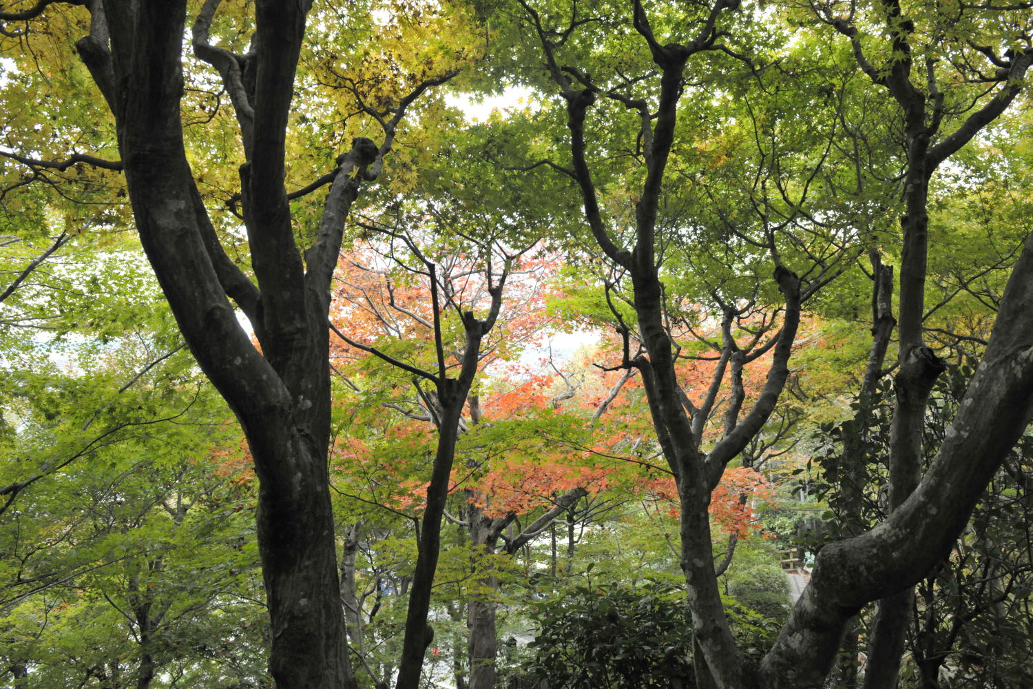 Dans les parcs les Erables poussent librement (ils ne sont pas greffés) , ils sont conduits ou formés probablement mais pas plus que d'autres espèces d'arbres. De toutes façons tous sont l'objet de soins extrèmement attentifs à l'équilibre des branches, à leur espacement pour ne pas frotter les unes sur les autres. La taille par transparence n'a pas besoin de porter ce nom pour être pratiquée au Japon. Ce que l'ai vu de l'entretien de ces arbres ressemble beaucoup à ce que nous appelons la "taille douce".