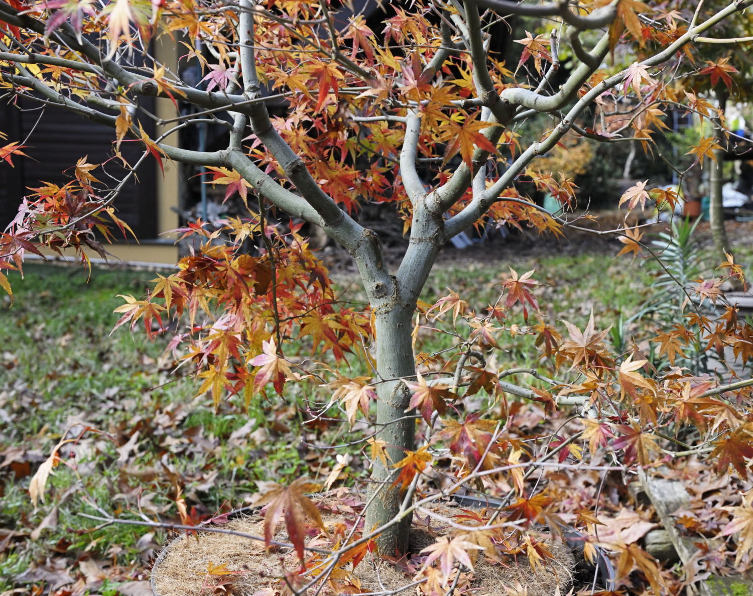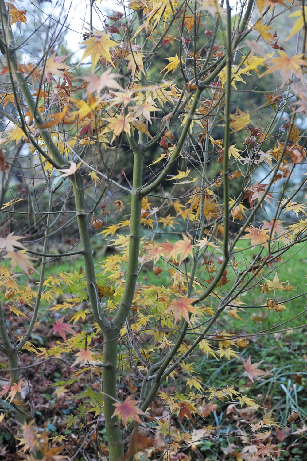 2- palmatum type de graine 8 ans. Les hasards de l'hybridation font qu'il pousse verticalement, je l'accompagne sans le contrarier.