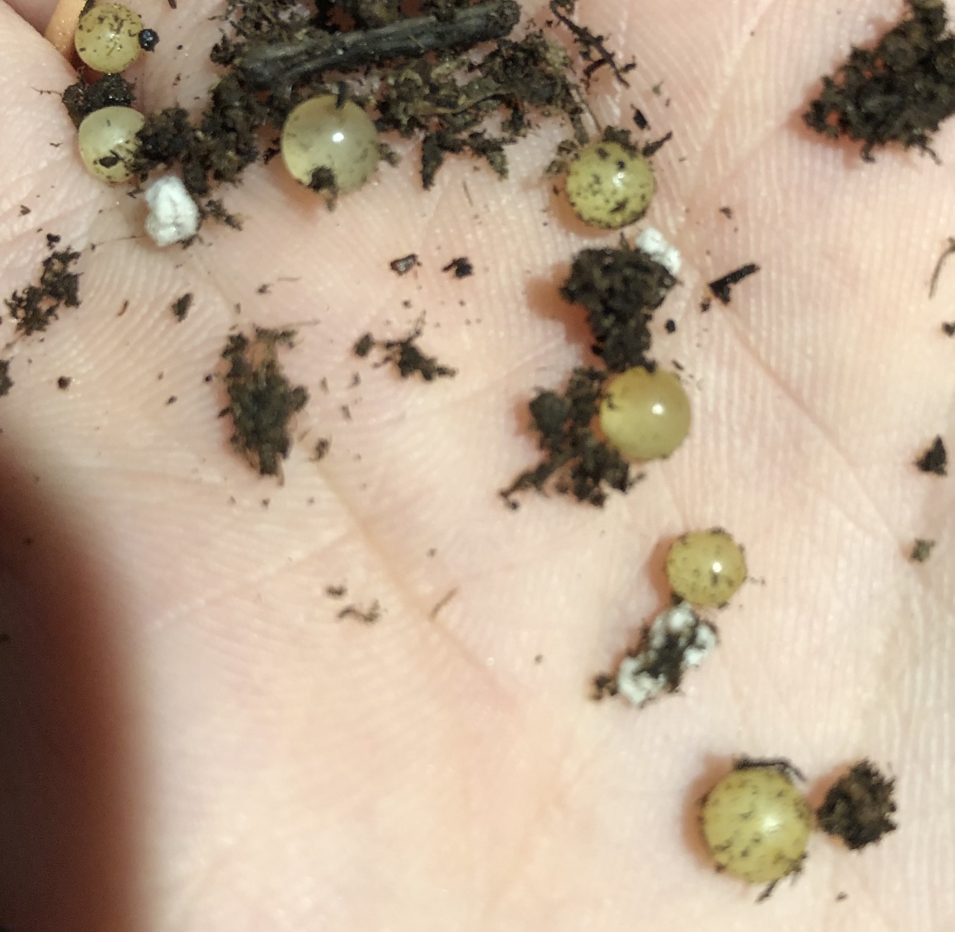 J’ai trouvé ces petites boules dans la terre de ma plante. Lorsqu’elles sont écrasées un liquide sort de ces dernières. La personne m’ayant donné la plante m’assure ne pas avoir mis d’engrais à fonte lente. Qu’est-ce que c’est?